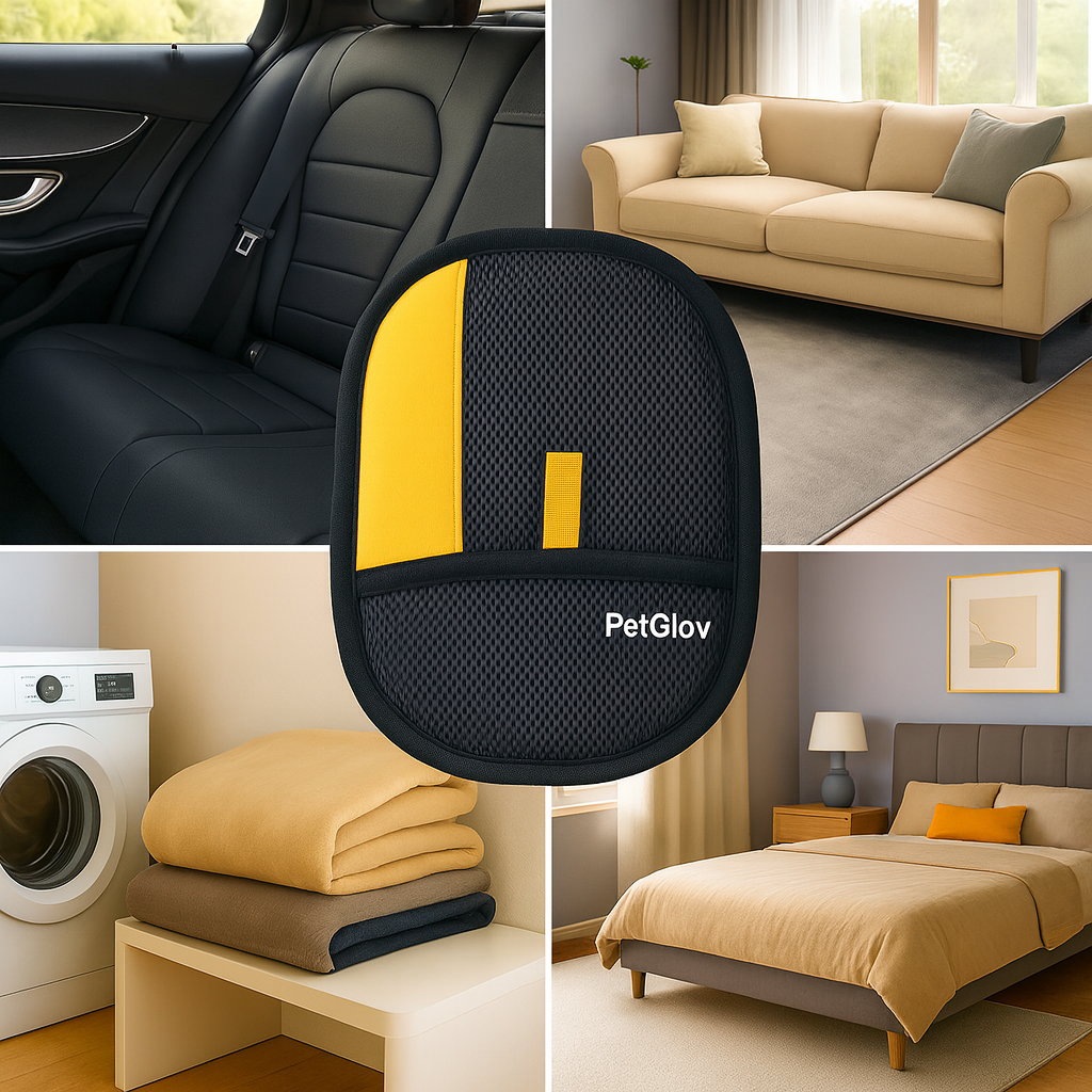 Du canapé à la voiture, PetGlov™ élimine les poils d’un seul geste fluide.
